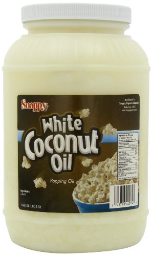 Coconut oil is the product many movie theaters use to pop popcorn and it gives the popcorn a great buttery flavor. White coconut oil is pure without any coloring. Order by the gallon or save money and order by the case of 4.